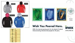 To mark three decades of being the meeting place for networks and people, we’re rolling out two special member gifts: a fresh batch of our much-loved INEX hoodies and brand-new 30-year commemorative stickers for laptops (or wherever you choose to s